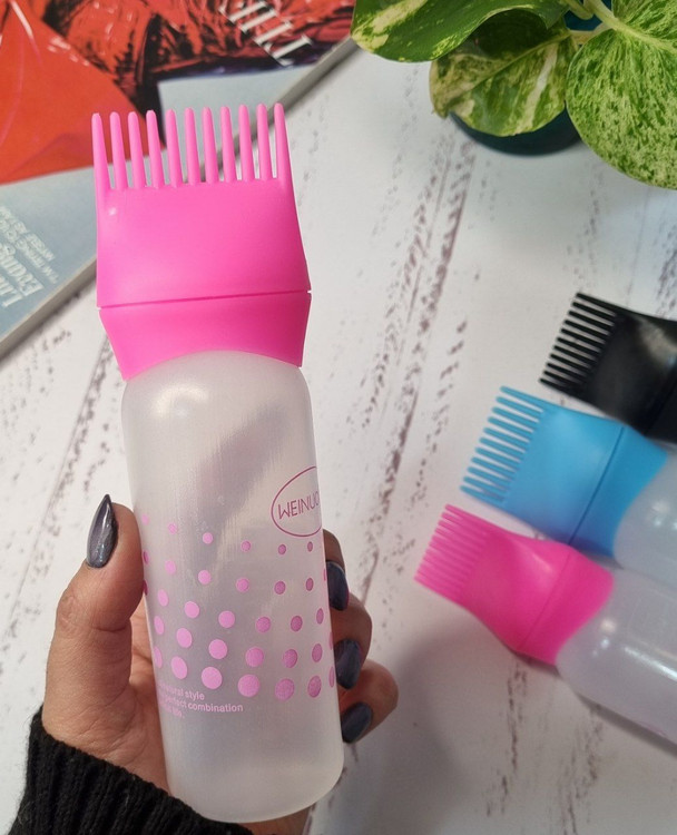 این بطری بخاطر داشتن اپلایکاتور شانه ای بصورت خطی و مستقیم همزمان با شانه کشیدن مو، روغن را به کف سر میرساند