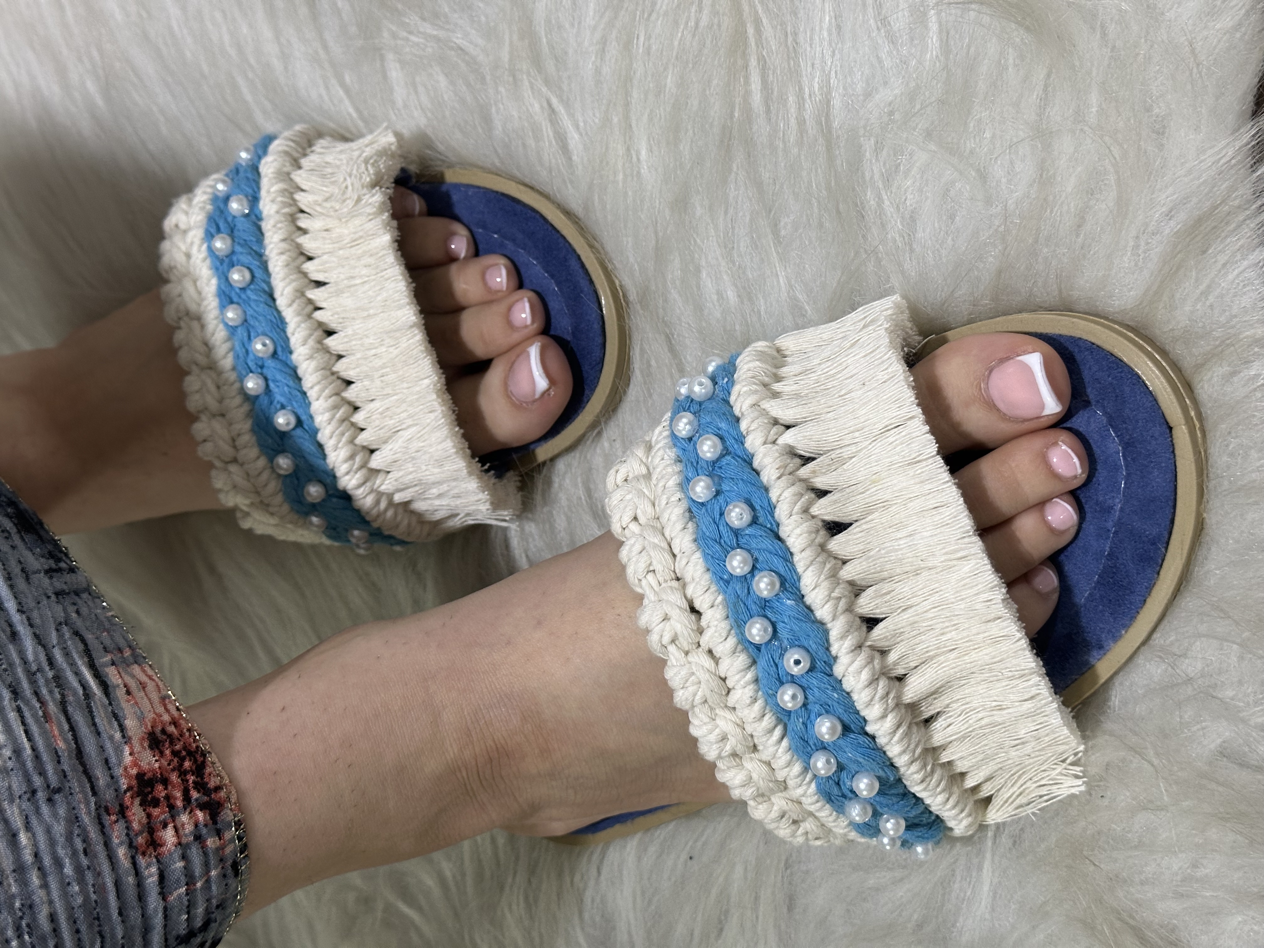صندل زنانه مکرومه تخت مدل بارانا